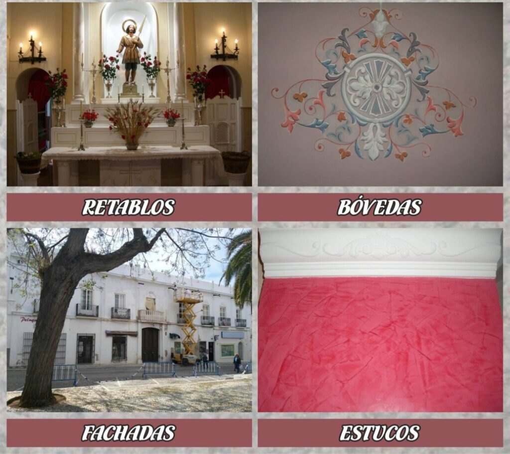 Arcos, muros, techos y detalles decorativos recuperan su estética mediante un proceso cuidadoso, donde la preparación y el acabado marcan la diferencia.